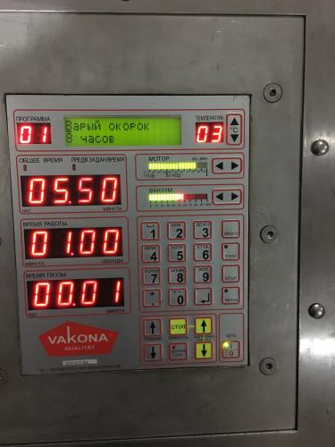 Мясомассажер «VACOMAT 350 K» (Италия) с охлаждающей рубашкой, 2006 год выпуска. Предназначен для бережного массирования сырья и перемешивания фарша в пульсирующем вакууме. Изготовлен из нержавеющей стали. Высокоэффективное микропроцессорное управление. Бесступенчатое регулирование скорости барабана позволяет бережно обрабатывать любые продукты, включая продукты с костью. Регулируемая глубина вакуума Таймер для работы в ночное время и праздники.
